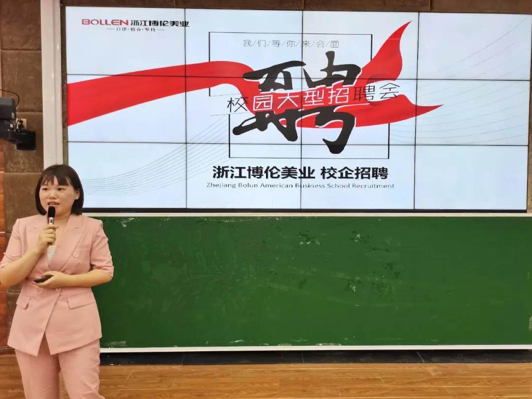 博伦美业人力资源负责人提出:毕业后要及时规划自己的工作计划,要果断选择,不要兜兜转转、犹豫不决。博伦美业是一家极少数不过分追求业绩的企业、极少数不追求客户数量的企业、极少数以员工为伙伴的企业。对企业工作人员有“10100工程”,致力于花费10年,让100名员工在浙江有房有车。公司还提供有英国保险通道,可通过公司组织去往香港购买保险。公司在储备干部、总经办助理方面为同学们提供了30个就业名额。
