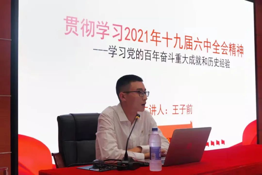 会上,王子前以“学习党的百年奋斗重大成就和历史经验”为题进行了宣讲,重点围绕“党的百年奋斗的重大历史成就和历史经验”进行了系统宣讲和深刻阐述。王子前指出,全会审议通过的《决议》通篇融汇了百年来中国共产党践行为中国人民谋幸福、为中华民族谋复兴的初心使命所进行的奋斗、牺牲和创造,深刻揭示了“过去我们为什么能够成功、未来我们怎样才能继续成功”。