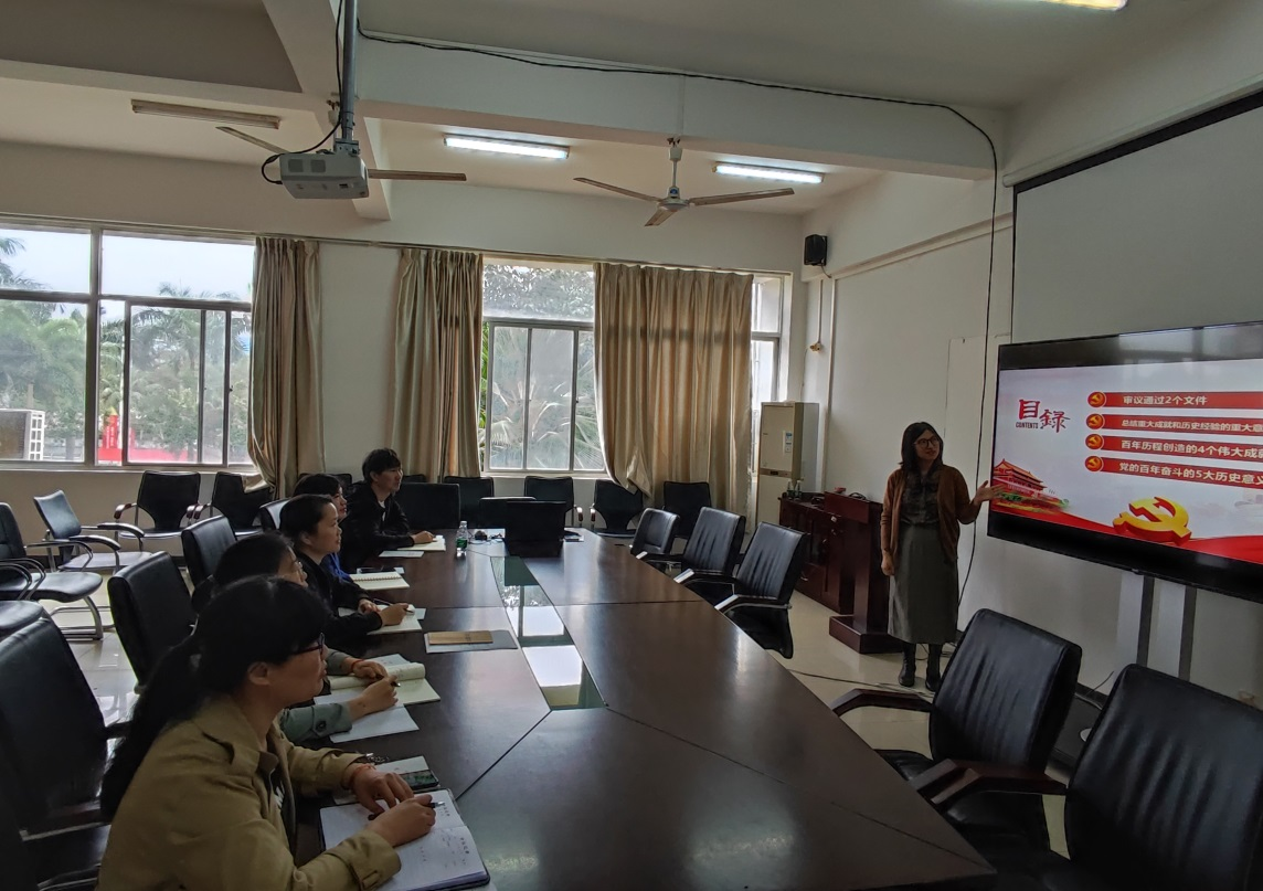 2021年12月14日中午11点,伟德体育行政党支部在会议室1-205召开支部会议,深入学习贯彻十九届六中全会精神,支部书记赵爽围绕“全面把握党的十九届六中全会精神内涵”作专题报告。