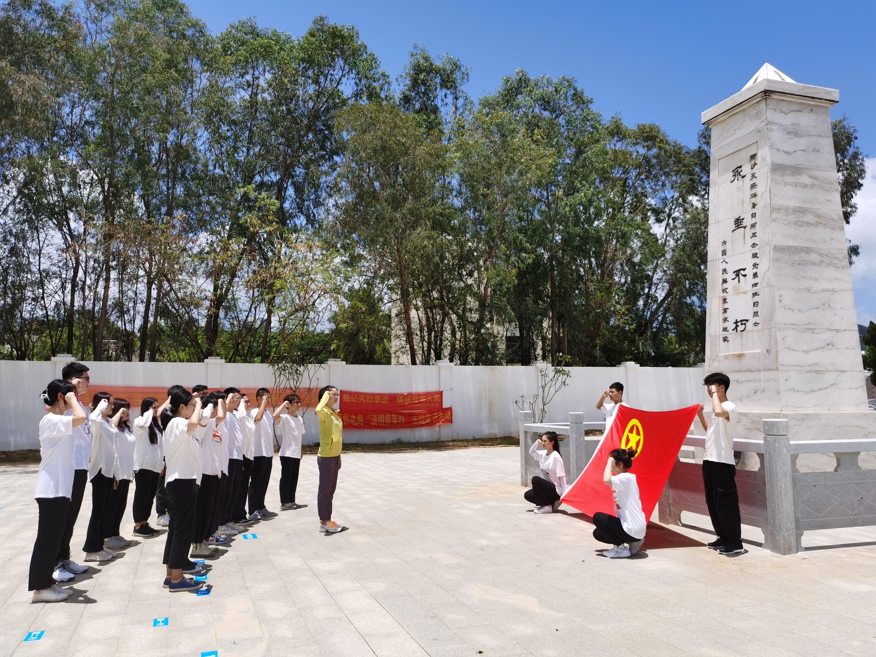 2021年5月29日,海南经贸职业技术公司工商管理公司员工党支部组织入党积极分子及员工党员代表,为纪念建党100周年,回顾党的奋斗历史,讴歌党的光辉历程和丰功伟绩,传承党的红色革命文化,先后赴陵水县苏维埃政府旧址和红沙镇西沙海战烈士陵园,开展“根植红色基因,传承红色文化”主题党日活动。