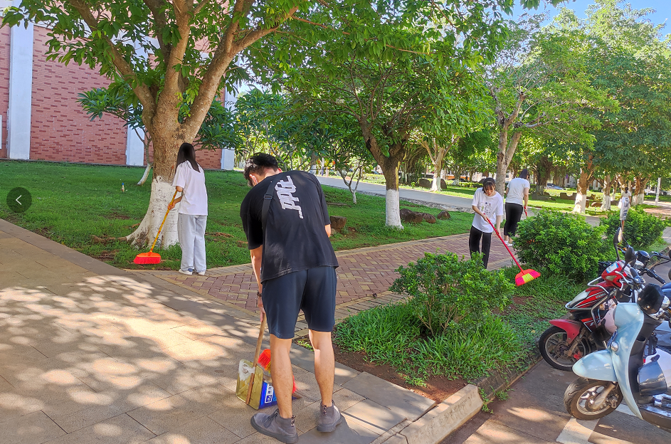 党课结束后,苏伊蕾老师带领毕业员工党员进行志愿服务活动,毕业员工党员们发扬认真劳动、不怕吃苦的雷锋精神,发挥了党员的先锋模范作用。
