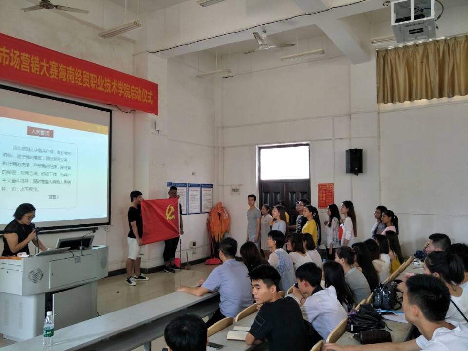 6月14日中午11点40分,公司在1-209教室召开了工商管理公司入党宣誓仪式暨专题党课,由印华老师主持。蒙永坚书记、赵爽老师、赵志凌老师、徐翊缤老师、刘冬芸老师、陈俊池老师和叶剑峰同学等15名预备党员、在公司党员参加会议。