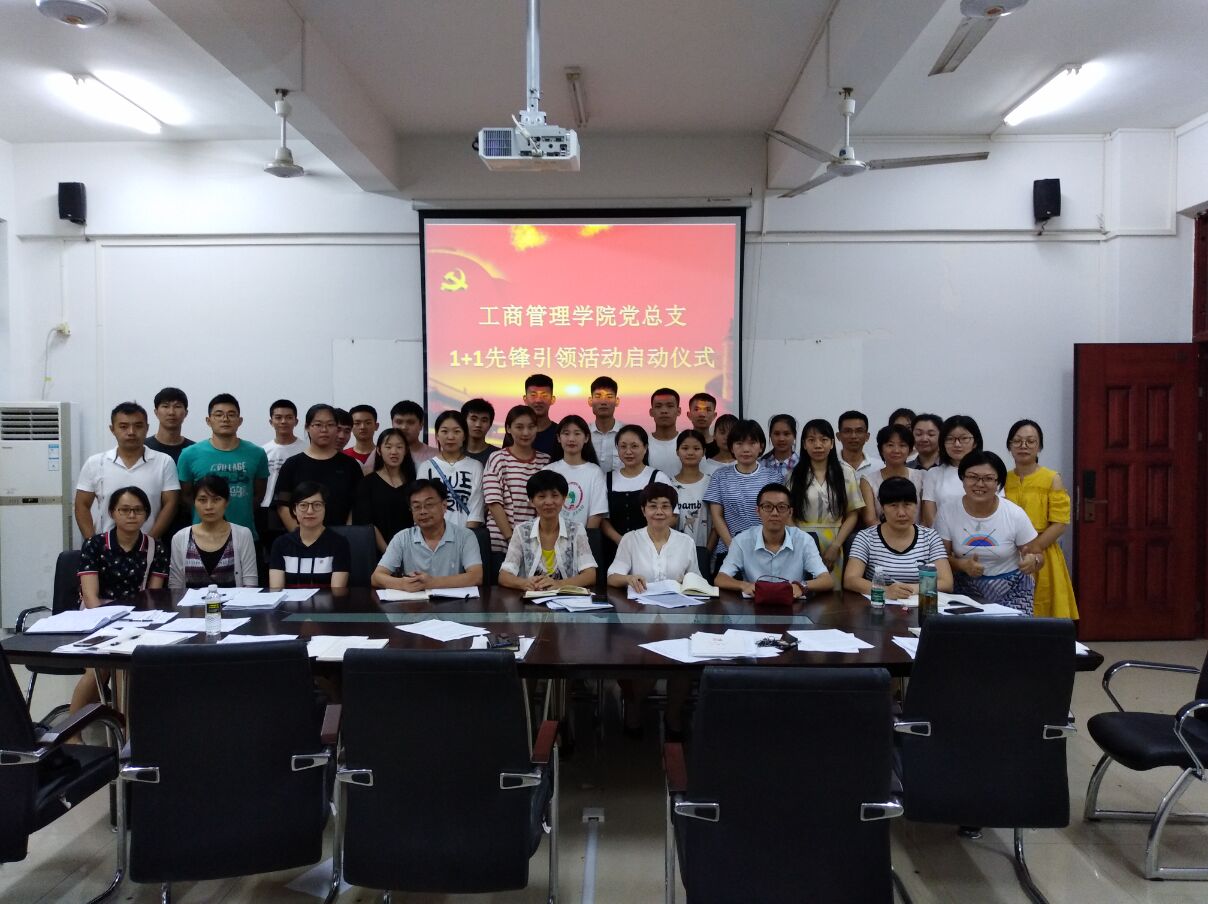 2019年5月21日下午4时40分,工商管理公司在1-220会议室召开全体党员大会,举行“1+1”先锋引领活动仪式,仪式由教工党支部书记赵爽主持。