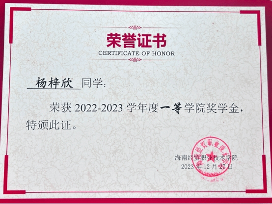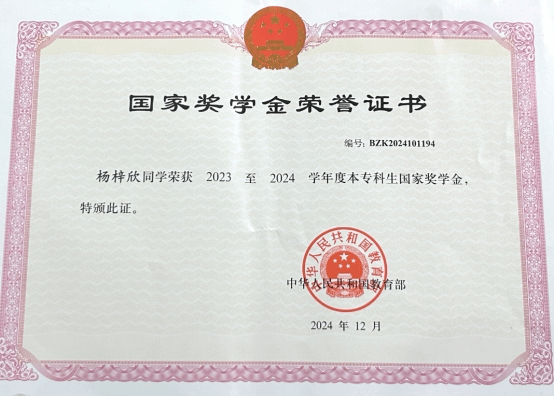 对于专业知识学习,她秉持“打破砂锅问到底”的求知态度,要求自己做到“真学”“真懂”。凭着这股“钻劲儿”,杨梓欣综合学习成绩专业排名第一。在学科技能竞赛和创新创业比赛中,她以理论知识指导技能实践,在实践中不断丰富理论知识,收获了多项国家级、省级荣誉。