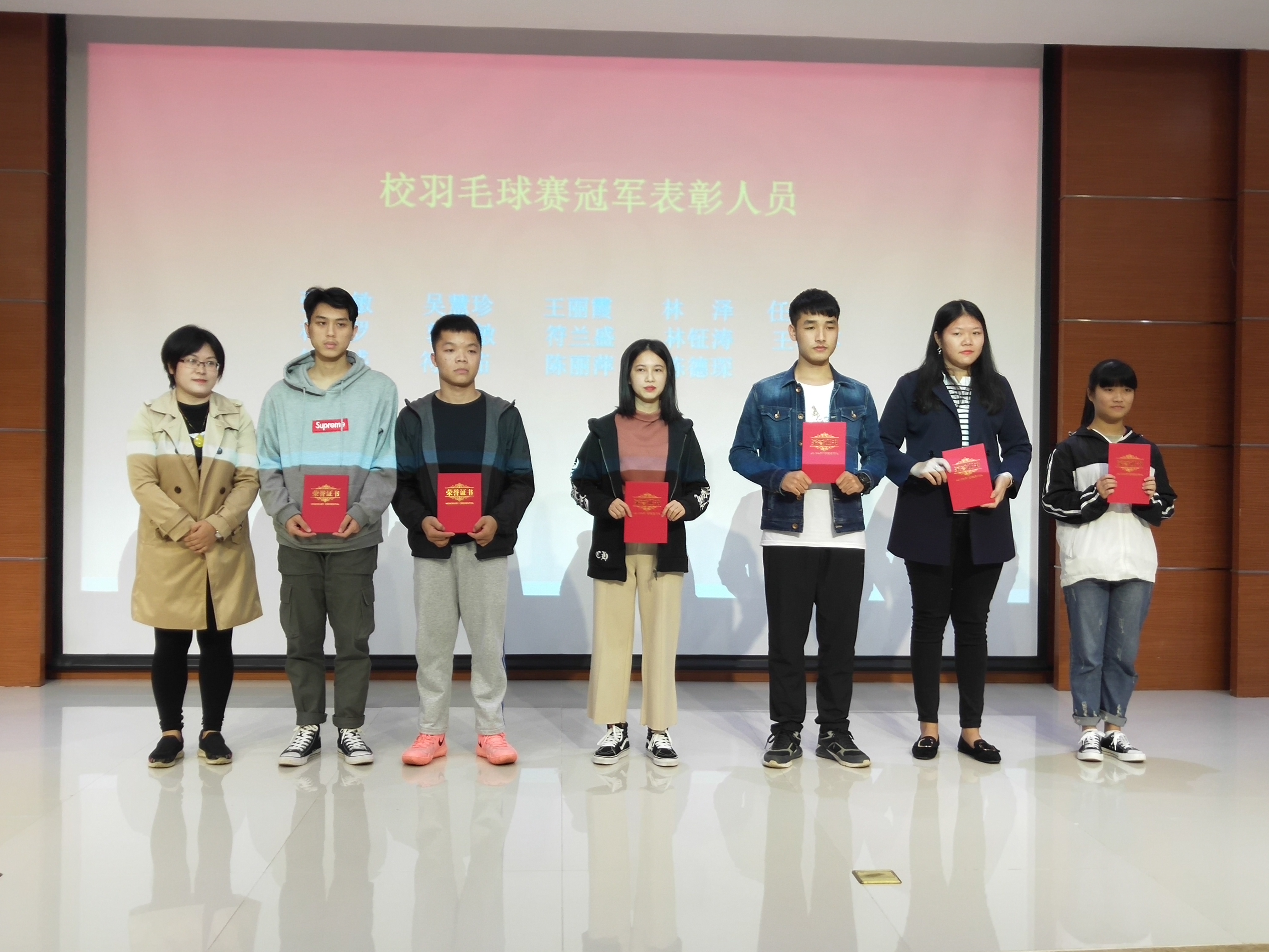 大会在嘹亮的国歌声中拉开帷幕,院学工办主任赵志凌老师宣读表彰决定,并对他们表示衷心的祝贺。随后由优秀运动员代表冯行宣和员工干部代表符惠菲代表发言,他们表示将在今后的生活将体育精神继续发扬,与公司同发展,为公司再创佳绩。参会老师分别为2018年校“迎新杯”篮球赛冠军、校第六届男子校园足球赛冠军、校第七届校运会羽毛球赛小牧冠军和第七届运动会优秀运动员颁发荣誉证书,进行合影留念。最后由公司党总支蒙永坚书记作总结发言,蒙书记在讲话中希望同学们要坚持体育锻炼保持良好的体魄,对工管学子寄予厚望,希望在今后的学习和活动中再创佳绩。