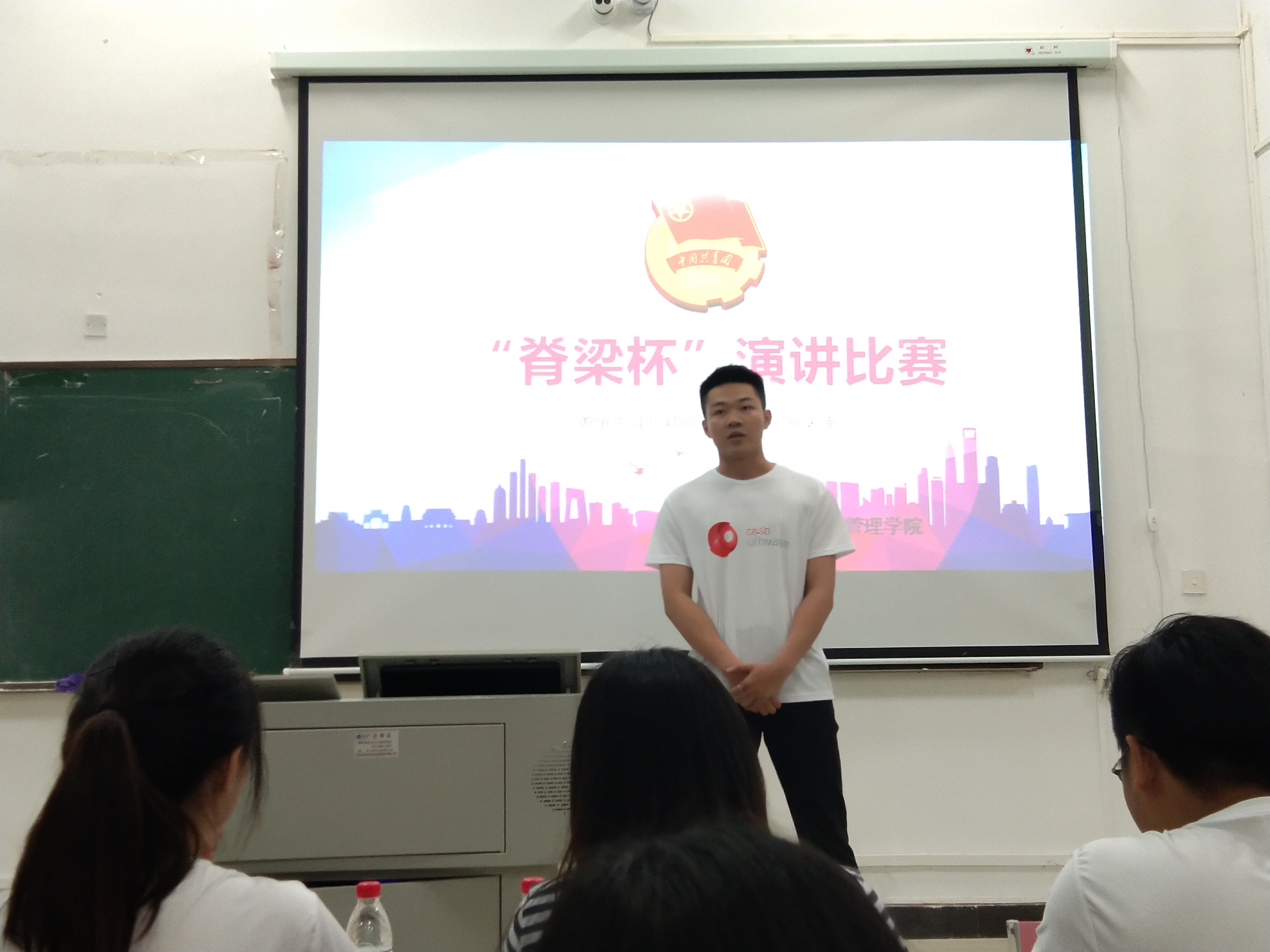 2019年4月22日讯,工商管理公司举办首届“脊梁杯”演讲比赛。经过激烈的角逐,最后2017级报关与国际货运专业武森豪同学、2018级国际经济与贸易专业义婷同学胜出,将代表公司参加校首届“脊梁杯”决赛。