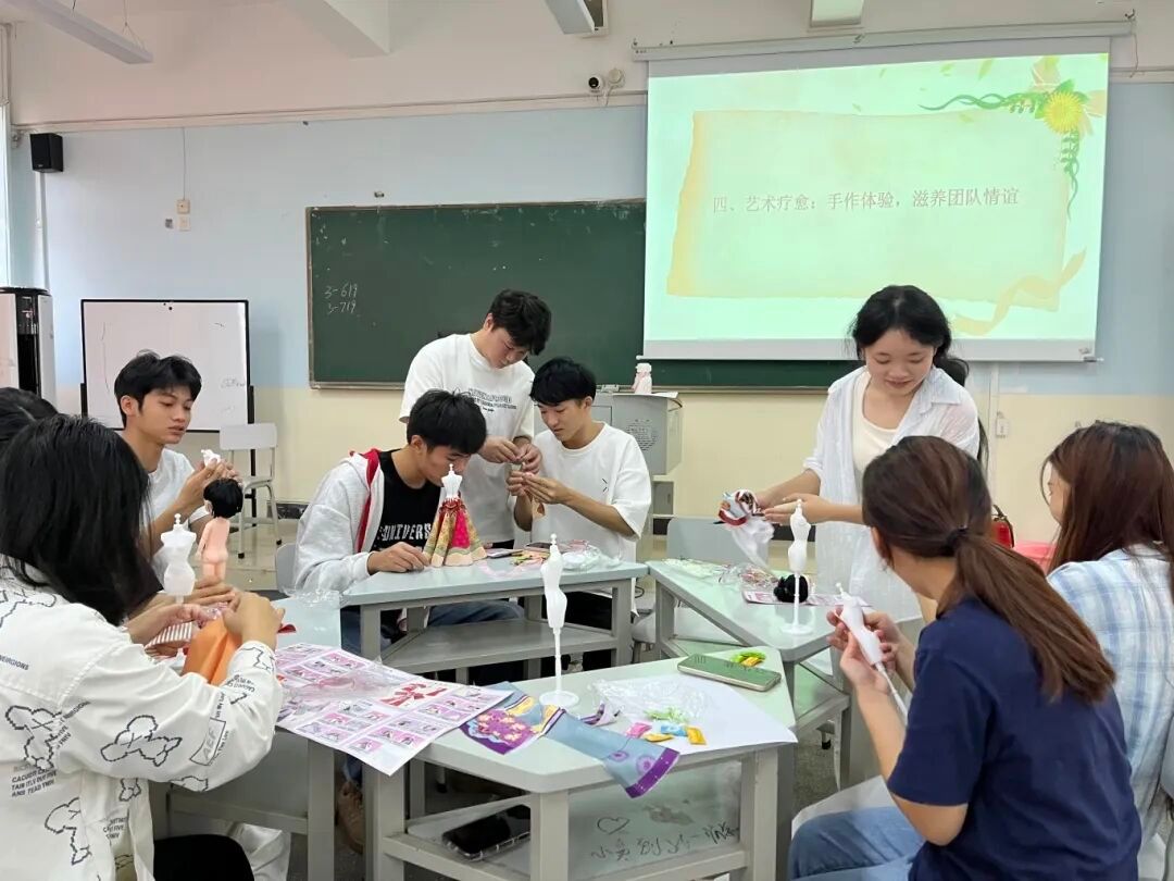 汉服手工艺制作融入艺术疗愈,同学们在款式选择、色彩搭配与剪裁拼接中释放压力、锻炼专注。有同学表示,“制作不仅学技能,更是一次心灵疗愈。”大家在协作中深化友谊,感受团队温暖。