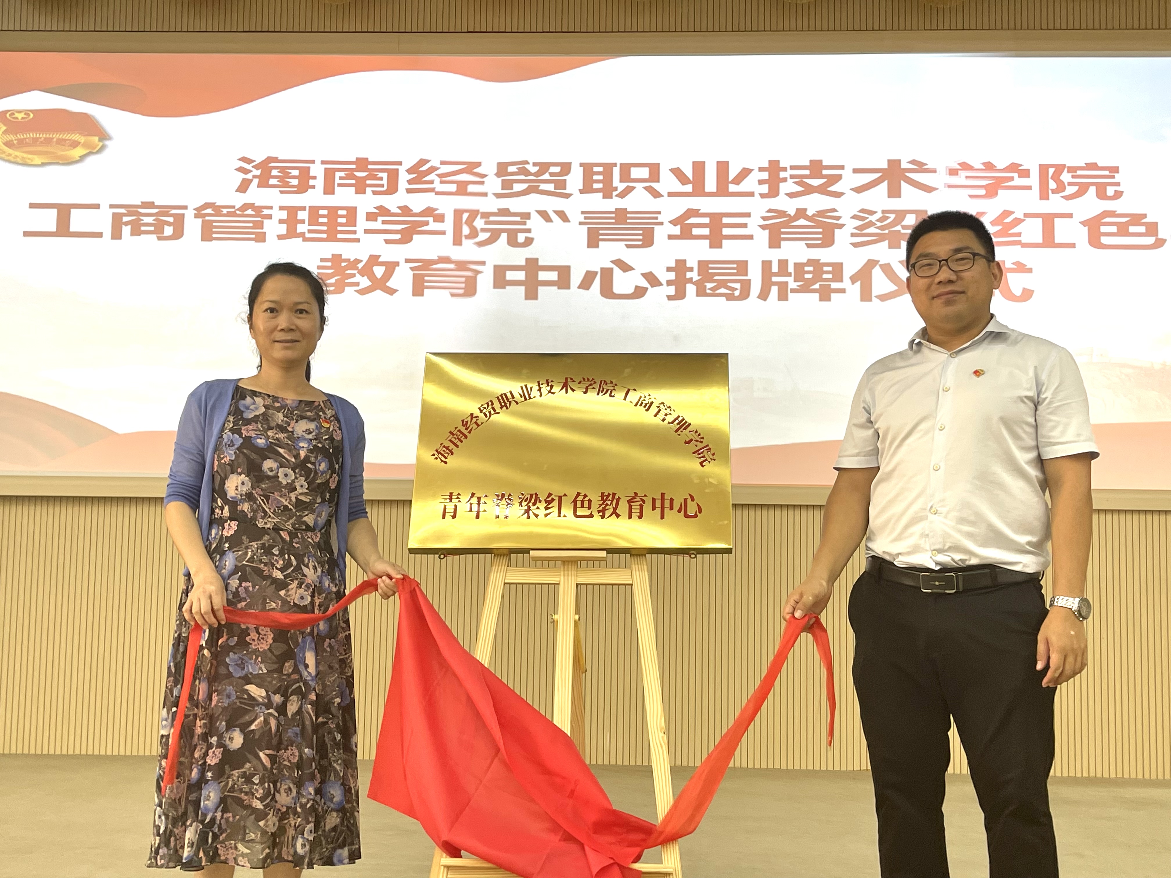 公司党总支书记黄邦姬、公司党总支副书记冯标山共同揭牌-----海南经贸职业技术公司工商管理公司“青年脊梁”红色实践教育中心