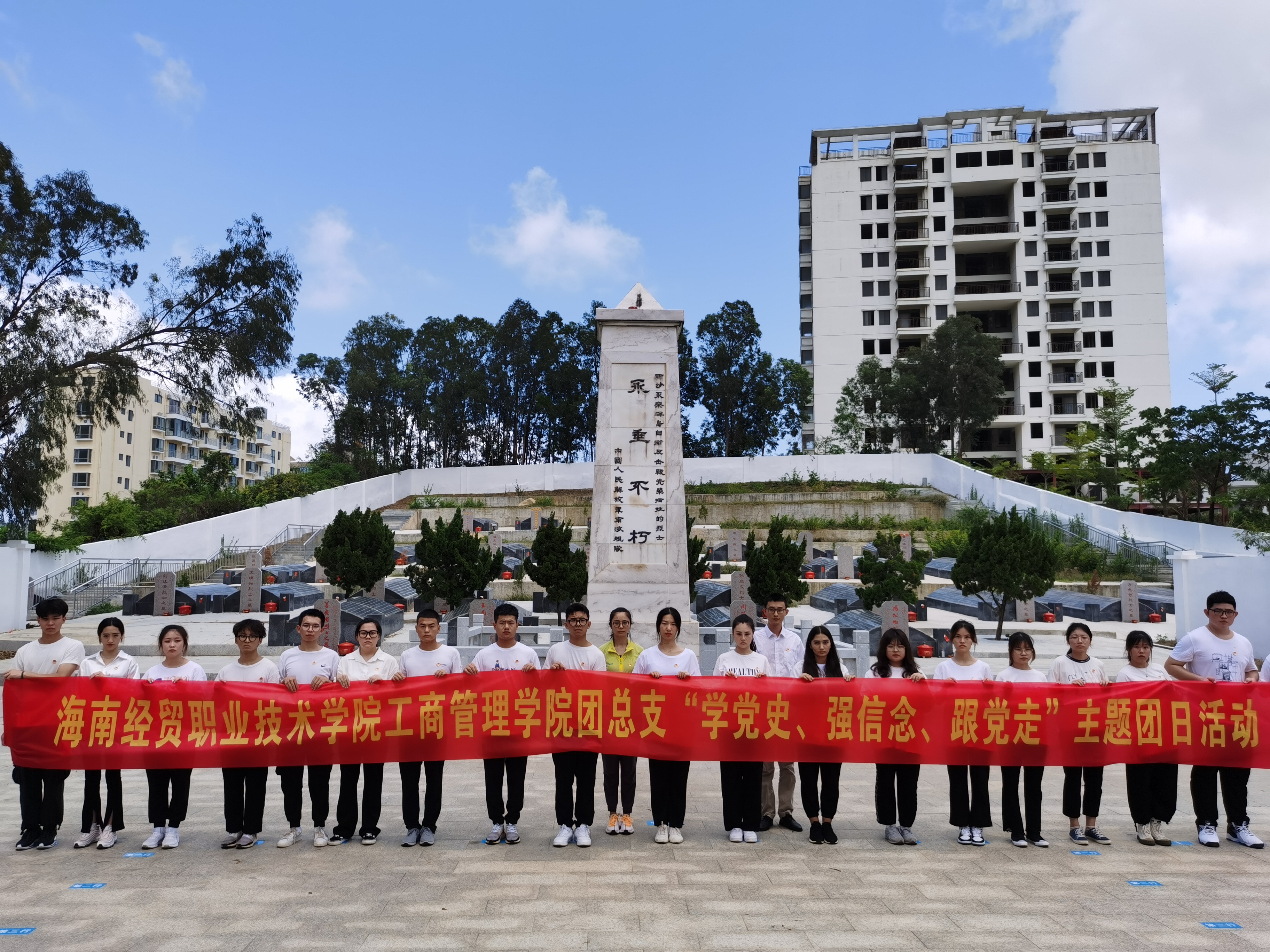 2021年5月29日,海南经贸职业技术公司工商管理公司团总支组织老员工青年团员代表先后赴陵水县苏维埃政府旧址和红沙镇西沙海战烈士陵园开展“学党史、强信念、跟党走”主题团日活动,教育和引导青年学子厚植爱党、爱国、爱社会主义的情感,扎实开展党史学习教育。