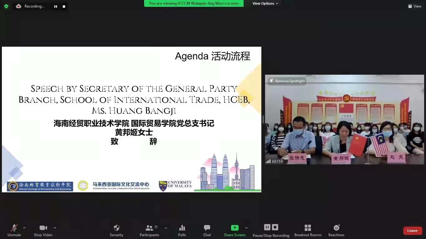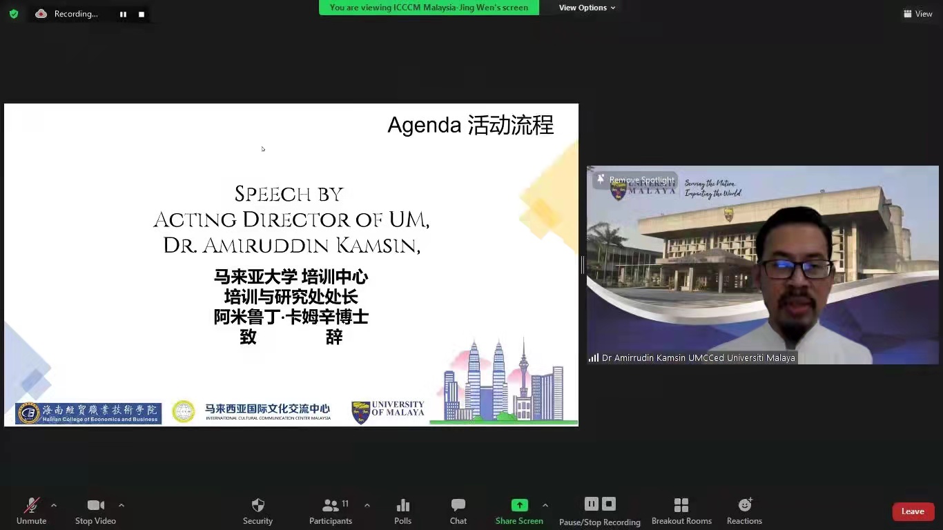 2021年12月15日,伟德体育、马来亚大学、马来西亚国际文化交流中心共同举办的“员工线上游学研修班”举行开班仪式,开启为期10天的马来文化课程和管理专业课程之旅。