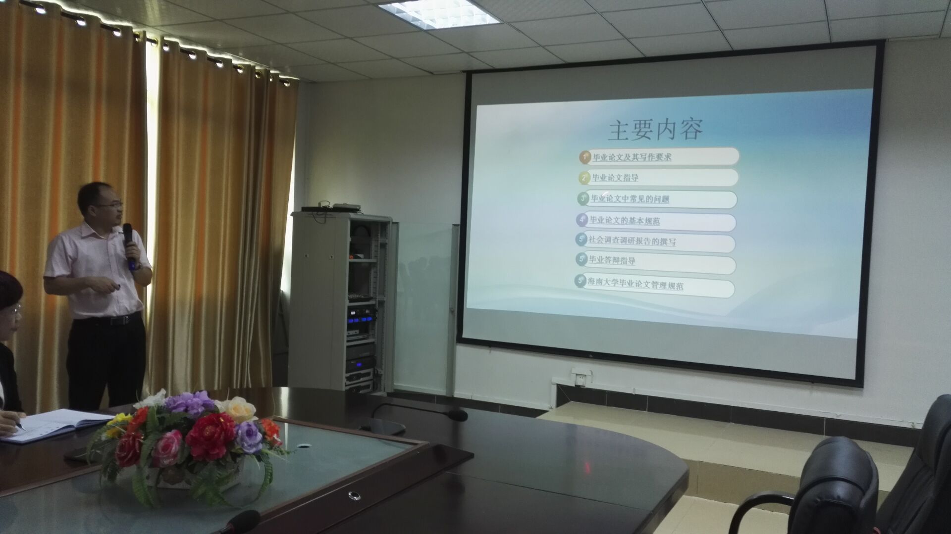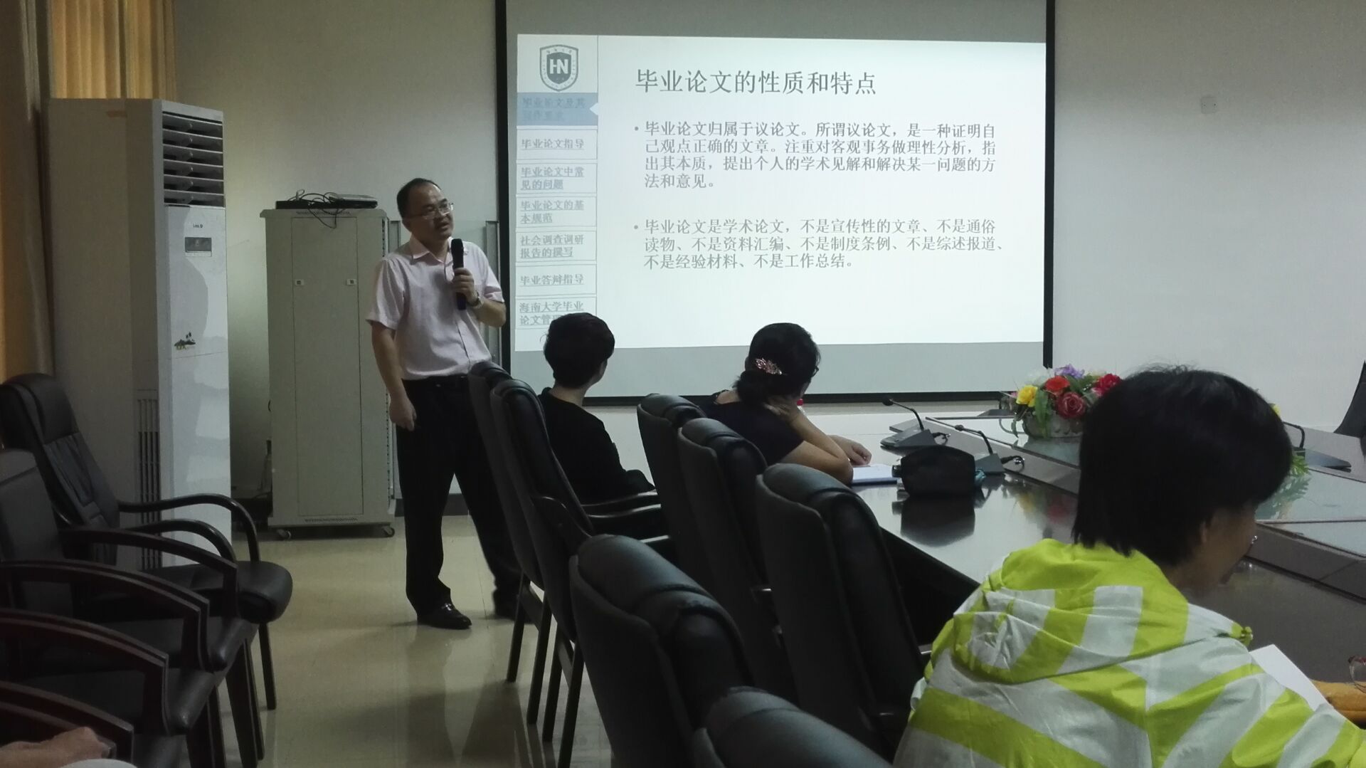 接着刘家诚教授通过海南大学本科毕业论文的实例,向公司老师介绍了指导毕业论文需要关注的问题。刘教授主要从“毕业论文及其写作要求、毕业论文指导、毕业论文中常见的问题、毕业论文的基本规范、社会调查调研报告的撰写、毕业答辩指导、海南大学毕业论文管理规范”等七个方面详细讲解了毕业论文指导工作的各项要求,使在场教师受益匪浅,也为顺利完成公司第一届4+0本科毕业生的毕业工作奠定了基础。