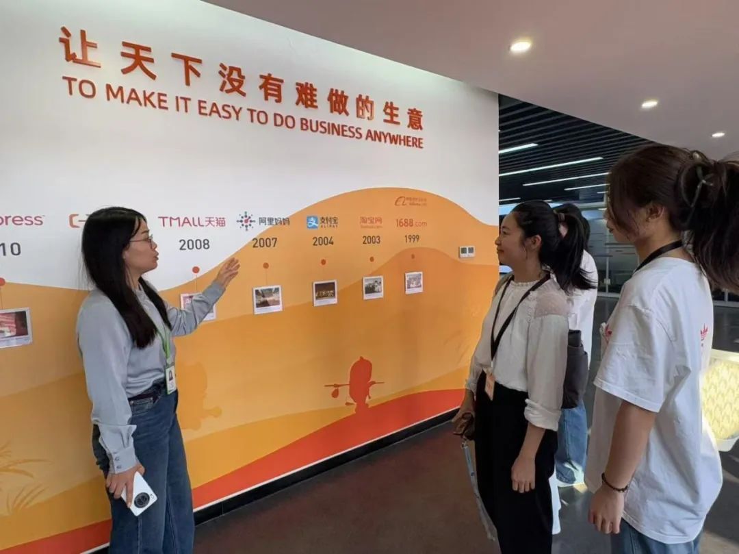 随后,师生们还走访了阿里巴巴eWTP产业公司项目合作企业海南龙源教育文化发展有限公司,阿里巴巴GDT教研高级专家张丹为大家介绍了阿里巴巴的发展历程。座谈会上,张丹导师对已开设的eWTP系列课程向同学们进一步了解上课的情况,以便让课程内容能够有针对性的优化,更贴合高职员工学习使用。同时,张丹导师针对同学们在跨境电商岗位及相关困惑进行答疑解惑,她结合之前的跨境电商任职经历为同学深入介绍项目中不同岗位的职责要点以及跨境电商人才需要具备的相关能力,同学们受益匪浅。