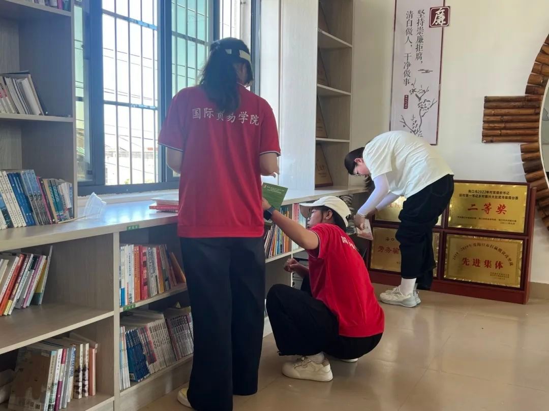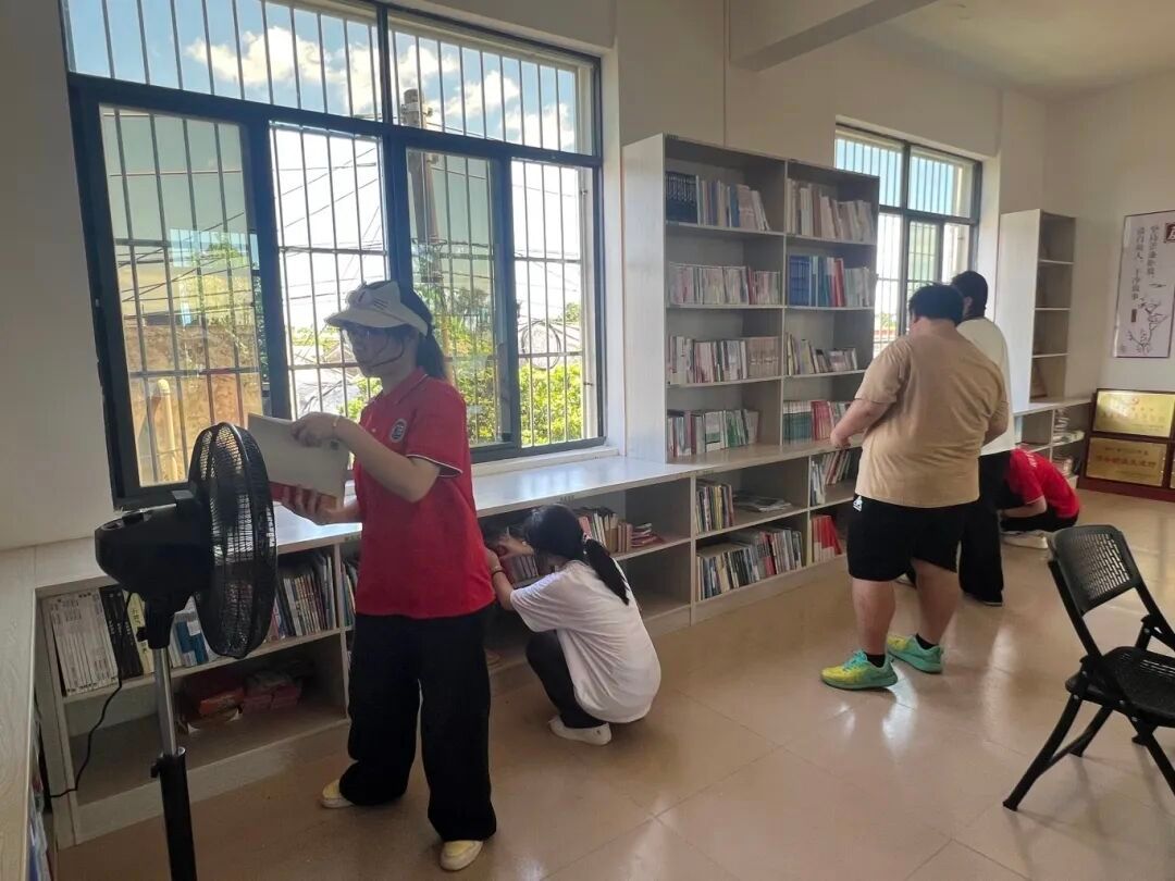 实地调研结束后,实践团队来到村委会图书馆,分工协助,着手将馆内的3000余册书籍分类整理上架,让每一本承载知识的书籍都找到合适的位置。这看似简单的劳作,却是团队将“汲取奋进力量”落到实处的体现——用细致耐心的行动,为村民打造整洁有序的阅读空间,让知识的光芒更好照亮乡村角落。这份初心将激励着团队在助力基层发展的道路上持续前行。