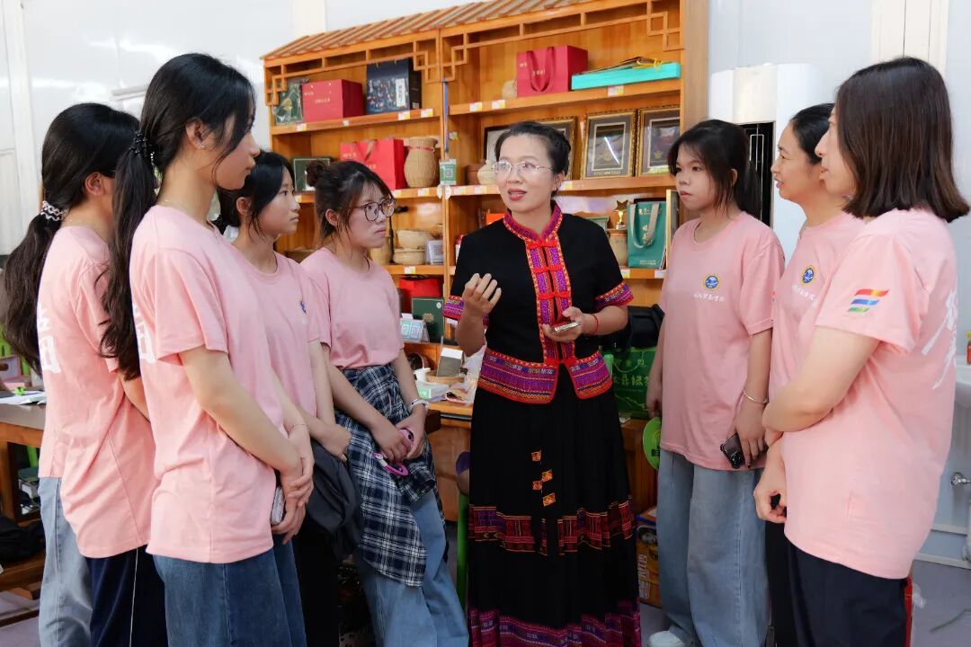走进五指山,实践团的脚步既踏响了非遗传承的新节奏,也踩准了茶香飘远的新路径。在“布黎布舍”非遗文创工作室,返乡老员工陈孟丽将黎苗服饰文化融入文创设计的实践,引发团队共鸣——他们随即设计“线下体验研学+线上直播带货”模式,用“黎锦纹样藏着方言密码”的故事打动消费者,还优化宣传关键词,突出“天然染料环保理念”,让千年非遗通过电商走进现代生活。