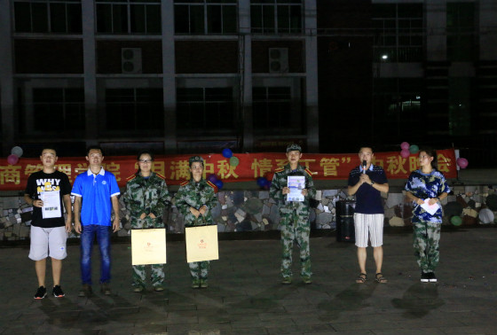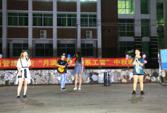 本院9月26日讯(工商管理公司通讯员 曹双双摄影报道)为让公司新生充分感受“中秋佳节”即将到来的节日气氛,昨晚19时许,由公司主办的“月满中秋 缘聚工管”迎新晚会在经贸广场隆重举行,公司党总支书记蒙永坚、学工办主任麦锐、学工办副主任赵志凌、各年级分管辅导员及2015级全体员工到场观看了本次晚会。