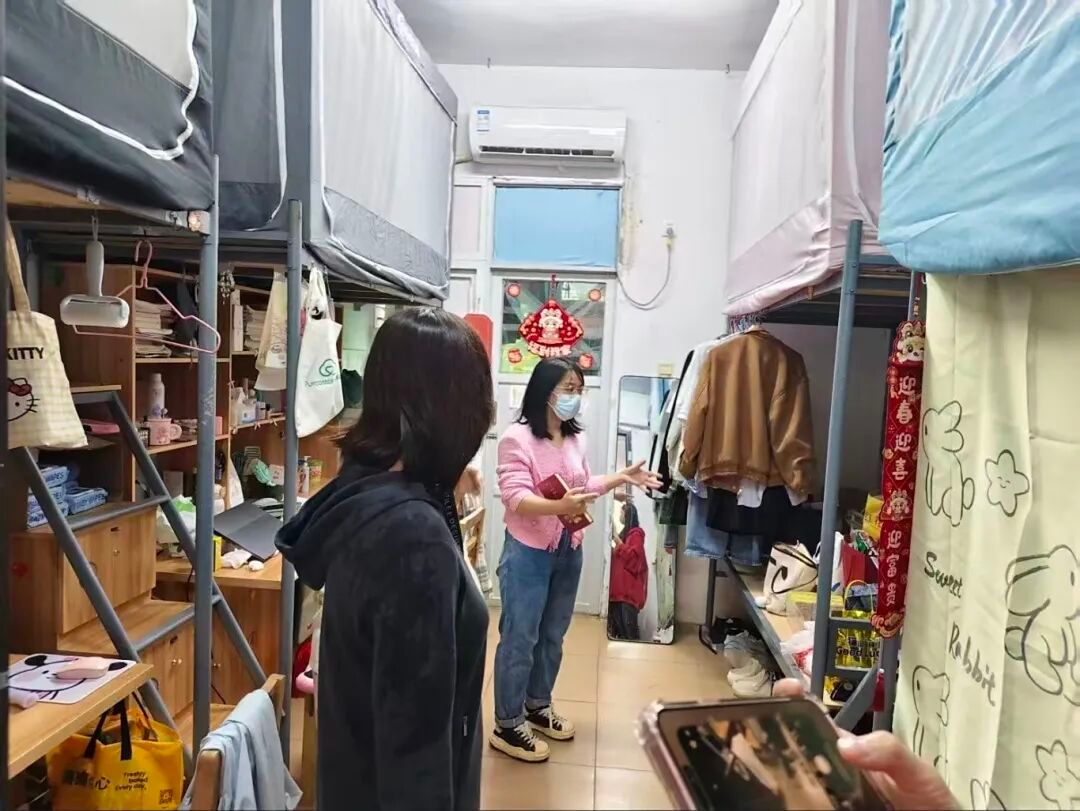 检查指导过程中,由辅导员、员工干部组成的考评小组逐间深入宿舍,对照“桌面无杂物、地面无积尘、洗漱区无积水”的评分标准细致检查,同时重点关注宿舍文化氛围营造,对具有班级特色、专业特点的装饰设计给予充分肯定。针对部分宿舍存在的物品摆放杂乱、收纳技巧不足等问题,考评小组成员现场示范,从空间规划、物品分类到装饰搭配,提供全方位实操指导。