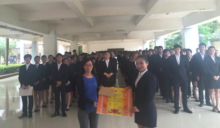 中午12时许,礼仪操比赛正式拉开帷幕,蒙书记致开幕词,她表示:礼仪操比赛不仅仅是为同学们提供一个展示个人风采的平台,更主要是希望通过比赛帮助同学们提高自身修养与素质,同时也希望借助这个机会进一步加强我系学子的文明素质建设,为同学们将来融入职场打下良好的基础。 本次参加比赛的是来自2014级八个班的员工,围绕进场、仪容仪表、礼仪操和退场四个环节来展示礼仪操的全貌,在主持人宣读完比赛规则及评分标准后,比赛正式开始,国经1班率先踏着整齐的步伐迈入了赛场,从容的微笑散发着国贸学子的青春活力,统一的服装、整齐的动作以及充满阳光的微笑无不向我们展现了他们讲文明、懂礼仪的精神风貌,接下来其他七个个班按照抽签顺序轮流进行了礼仪操展示,比赛过程中,同学们跟随着节拍、专注认真地完成每一个动作,以自然、整齐的状态赢得了评委和观众的赞许,整个比赛通过有序的进场、展示、退场等环节充分展现了员工们仪容仪表的全部风采。经过一个多小时的比赛,根据评委们的评分统计,由国经3班获得第一名,国商1班获得第二名,报关1班获得第三名和最佳组织奖,随后为获奖班级进行了颁奖并合影留念。 比赛结束后,王纪忠主任对整场比赛进行了点评,他对参赛各班同学们的表现给与了充分的肯定并送上了殷切寄语:希望同学们在今后的工作和学习上能继续保持这股热情,将这种优良传统传承下去。 据了解,我系礼仪操比赛至今已成功举办六届,旨在培养我系员工良好的礼仪素质和职业素养。由院团委主办的公司礼仪操比赛即将在5月12日举行,届时将从各系部2014级员工中随机抽选班级代表系部参赛,相信我系学子通过系部比赛的洗礼将会以更加从容的状态迎接挑战。