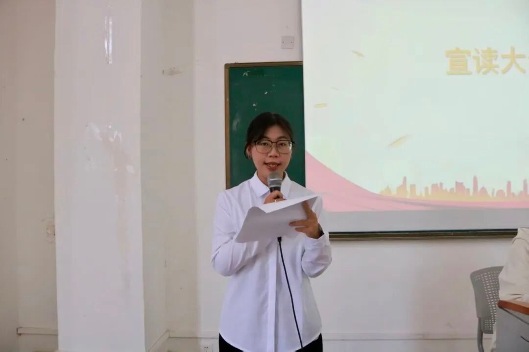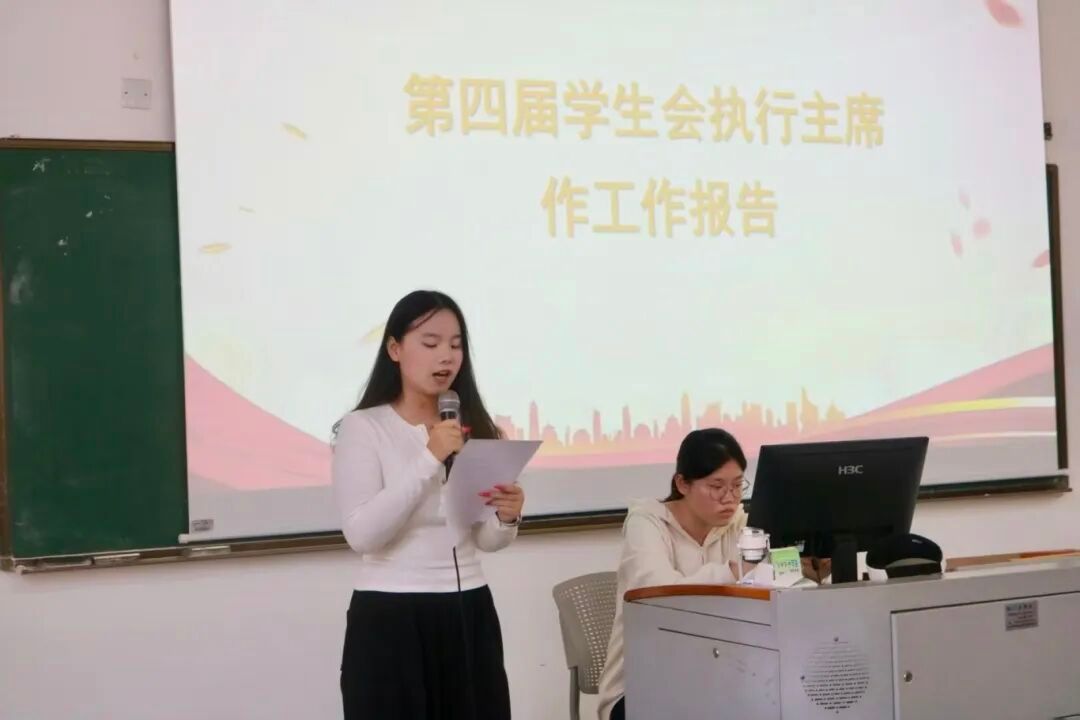 大会在庄严的国歌声中拉开帷幕。党总支副书记梁其钰充分肯定了过去工作,并强调员工组织要继续发挥桥梁纽带作用,服务同学成长,助力公司发展。员工会执行主席吴芷涵同学代表上一届员工会系统报告了2024-2025年度的工作成果与不足,为后续工作提供了参考。