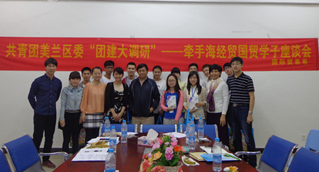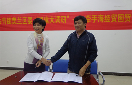 本月14日讯(国贸系通讯员 吴丹妮摄影报道)为进一步深化校地合作志愿服务模式,推动志愿服务事业发展,打造我系员工志愿服务新平台,经与共青团海口市美兰区委多次协调与沟通,我系于昨日下午15时许在第一教学楼召开了共青团海口市美兰区委“团建大调研”——牵手海经贸国贸学子座谈会,在会上,双方就志愿服务战略合作事宜达成意向,并签订了《共青团美兰区委——共青团海南经贸职业技术公司国际贸易系“志愿服务”战略合作协议》。